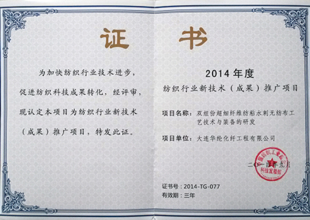 紡織行業新技術(成果)推廣項目證書